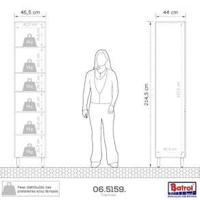 Dimensões: Altura -com pés-: 214 cm | Largura: 46 cm | Profundidade: 44 cm