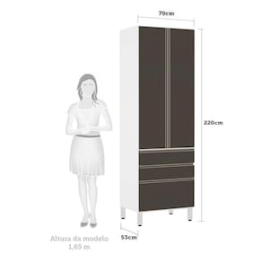 Paneleiro Torre 70cm 2 Portas 2 Gavetas e 1 Gavetão Pérola Luciane Móveis - Grafite