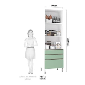 Paneleiro Torre 70cm 2 Portas com Vidro Reflecta Bronze 2 Gavetas 1 Gavetão Pérola Luciane Móveis - Verde
