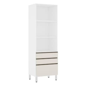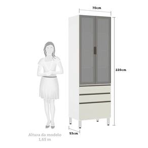 Paneleiro Torre 70cm 2 Portas com Vidro Reflecta Prata 2 Gavetas 1 Gavetão Pérola Luciane Móveis - Off White