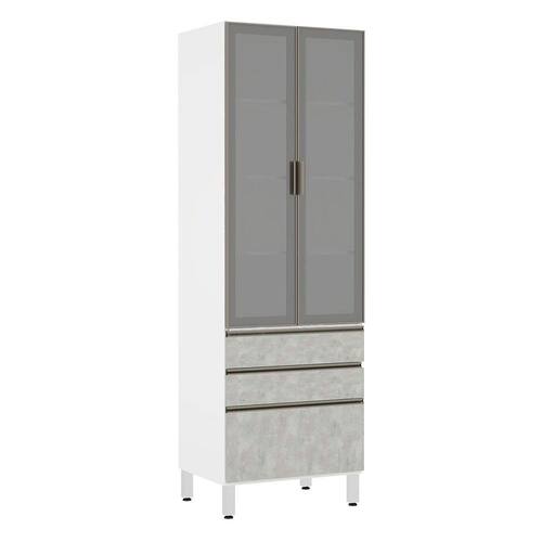 Paneleiro Torre 70cm 2 Portas com Vidro Reflecta Prata 2 Gavetas 1 Gavetão Pérola Luciane Móveis - Cinza Claro
