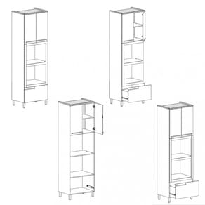Características: 1 Gaveta com borda em PVC 2 Portas 3 Prateleiras Acabamento pintura UV Acompanha cavilhas e parafusos Dobradiças caneco 35MM com amortecimento Estrutura em MDP 15mm Fixação com minifix Pés c/ sapata regulável plástica Puxadores de Madeira