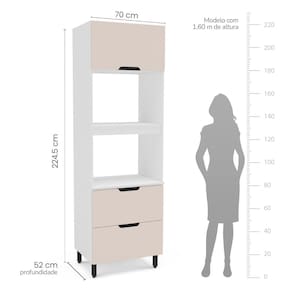 O Paneleiro Torre Quente 2 Portas 1 Gaveta Meena Politorno alia um visual clássico à praticidade, entregando ótimo custo-benefício. Equipada com duas portas basculantes e uma gaveta, disponibiliza amplo espaço para forno, micro-ondas, utensílios e mantimentos. O acabamento FF/UV confere alta resistência e fácil limpeza, enquanto a gaveta, montada em corrediça metálica, desliza com suavidade e segurança, aproveita o espaço vertical sem atrapalhar a circulação. Estrutura robusta e acabamento refinado fazem desta torre quente uma solução funcional e elegante para qualquer cozinha.