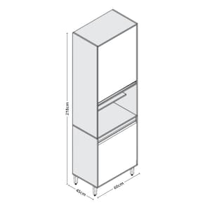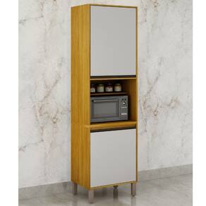 Características: 2 Portas com amplo espaço interno Design moderno e funcional Dobradiças metálicas Espaço para micro-ondas 330mm -A- x 570mm -L- x 450mm -P- Estrutura em MDP/MDF 15mm Ideal para organização e otimização de espaço na cozinha Pés cromados reguláveis para ajuste de altura e estabilidade Puxadores em alumínio
