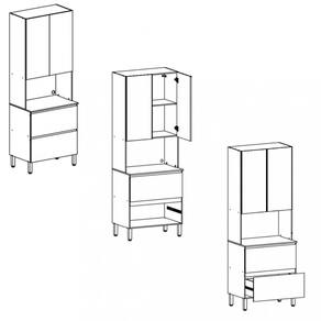 Características: 3 Portas 1 Gaveta 1 Prateleira 4 Pés reguláveis Acabamento em pintura UV Corrediças telescópicas Dobradiças com amortecedor Estrutura em MDP de 12 e 15 mm Porta basculante com pistão a gás Possui passa Fio Adesivo Puxadores usinados a 45°