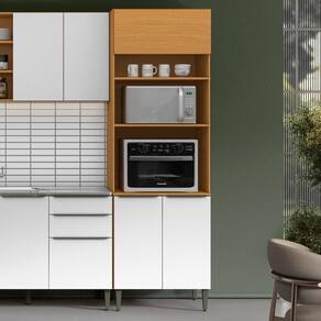 Paneleiro Torre Quente 3 Portas, design pratico e funcional para transformar sua cozinha. Estrutura em MDF (15/12 mm) e acabamento em Verniz. Composto por porta superior passante com pistão a gás e inferiores com dobradiças metálicas, espaço próprio para forno ou microondas (67,6x40,5cm), nicho decorativo funcional, puxadores e pés em plástico. Este produto será entregue em 1 volume.
