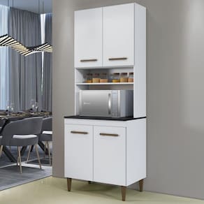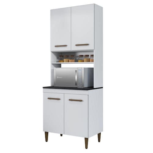 Paneleiro Torre Quente 4 Portas 3 Prateleiras Atenas Kaiki Moveis Branco