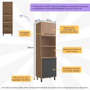 O Paneleiro Torre Quente 65cm para Forno e Micro-ondas 4 Portas Havana Multimóveis CR20311 traz sofisticação e funcionalidade para o seu ambiente. Produzido em MDP (15mm) com acabamento acetinado, ele se destaca pela durabilidade e resistência. Com 4 portas e puxadores modernos em PVC, esse armário oferece amplo espaço interno para organizar panelas e utensílios, contendo prateleiras internas que suportam até 5kg. Ideal para otimizar o armazenamento na sua cozinha. Além disso, conta com espaço dedicado para forno e micro-ondas, com tampo e base de 25mm que suportam até 25kg, garantindo praticidade na sua cozinha. Os pés em PVC com regulagem de altura proporcionam estabilidade ao móvel e facilitam a limpeza do ambiente.