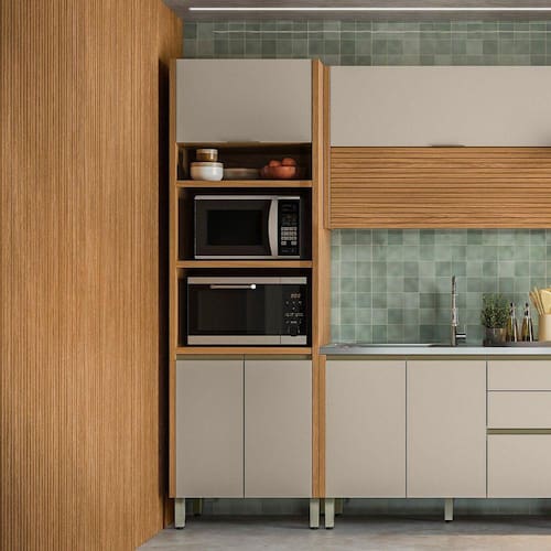 Torre Quente 0,7m Portinari é construída exclusivamente com 100% MDF e possui pistão a gás. É ideal para armazenar e organizar um forno elétrico e um micro-ondas na cozinha, combinando funcionalidade e praticidade. Acabamento da Porta: Pintura UV Altura dos Pés: 16.5 Ambiente Principal: Cozinha Complexidade da Montagem: Média: pode ser montado por mais de uma pessoa e/ou necessite de maior conhecimento para montagem Cor: Marrom/Off White Cor do Produto: Marrom/Off White Escala de Brilho: Fosco Escala de Brilho da Porta: Fosco Itens Inclusos: 1 Torre Quente, Manual de Montagem e Kit de Ferragem. Manual de Montagem e Instalação: https://cdn2.madeiramadeira.com.br/atributo/linea-brasil/1644888-torre-quente-0-7-v0.pdf Material da Dobradiça/Corrediça da Porta: Metálica Material da Porta: MDF Material dos Pés: Plástico Necessita Montagem: Sim Origem do Produto: Nacional Pés Reguláveis: Sim Peso: 61.95 Possui Espelho: Não Possui Possui Pés: 04 Possui Portas: 03 Possui Prateleiras: Não Possui Rodízio: Não Recomendações de Uso, Manutenção e Limpeza: Realizar a limpeza com um pano levemente umedecido em água. Sapatas Niveladoras: Não Sistema de Montagem: CAVILHAS, PARAFUSOS E MINIFIX Tipo de Dobradiça/Corrediça da Porta: Soft close Tipo de Puxador da Porta: Embutido