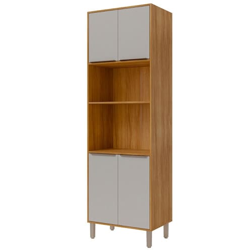 Com estrutura em MDF, 4 portas com dobradiças metálicas, puxadores plásticos e 3 prateleiras, ela une elegância e funcionalidade.