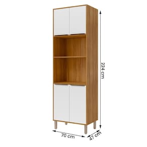 Com estrutura em MDF, 4 portas com dobradiças metálicas, puxadores plásticos e 3 prateleiras, ela une elegância e funcionalidade.