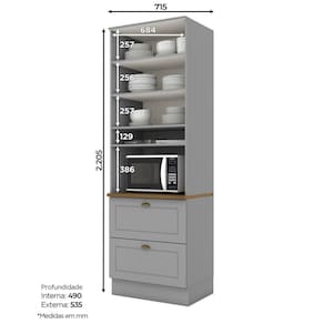 Paneleiro Torre Quente De Cozinha 1 Forno Americana Henn Cinza Com Nature