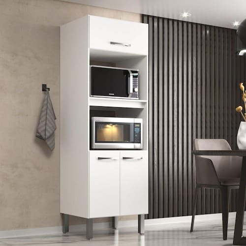 A Torre Quente da Móveis Sim é um móvel de cozinha prático e funcional, construído com material de alta qualidade, MDP com acabamento FF (Finish Foil), que proporciona uma superfície lisa, resistente a manchas e fácil de limpar. O acabamento em foil adiciona uma camada protetora, aumentando a vida útil do móvel. Inteligentemente projetado para otimizar o espaço, possui compartimentos específicos para micro-ondas e forno, garantindo praticidade e organização. Os puxadores de ABS conferem um toque moderno, enquanto as dobradiças metálicas asseguram suavidade e durabilidade. Essa opção de móvel de cozinha destaca-se pela praticidade, durabilidade e estilo, transformando qualquer cozinha em um espaço organizado, funcional e elegante. Acabamento da Porta: Finish Foil Acabamento da Prateleira: Finish Foil Acabamento dos Pés: Liso Altura dos Pés: 17 cm Ambiente Principal: Cozinha Complexidade da Montagem: Média: pode ser montado por mais de uma pessoa e/ou necessite de maior conhecimento para montagem Cor: Branco Cor do Produto: Branco Cor dos Pés: Preto Cor Interna: Branco Escala de Brilho: Fosco Escala de Brilho da Porta: Fosco Escala de Brilho da Prateleira: Fosco Itens Inclusos: 1 Torre Quente, Kit Ferragens e Manual de Montagem Linha ou Coleção: Direto Sim Manual de Montagem e Instalação: https://product-hub-prd.madeiramadeira.com.br/878960/documents/6844509f-ab50-49a9-a0f3-b6dde997131b57376manualdemontagemtq200.pdf Material da Dobradiça/Corrediça da Porta: Metálica Material da Porta: MDP Material da Prateleira: MDP Material do Puxador da Porta: ABS Material dos Pés: ABS Necessita Montagem: Sim Origem do Produto: Nacional Pés Reguláveis: Sim Peso: 23.5 Peso Máximo por Prateleira: 20 kg Possui Espelho: Não Possui Possui Pés: 04 Possui Portas: 03 Possui Prateleiras: 02 Possui Rodízio: Não Recomendações de Uso, Manutenção e Limpeza: Usar pano levemente umedecido seguido de pano seco. Sapatas Niveladoras: Sim Sistema de Montagem: Parafusos e Cavilhas Tipo de Dobradiça/Corrediça da Porta: Simples Tipo de Puxador da Porta: Externo Marca: DiretoSim
