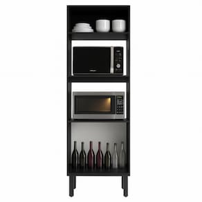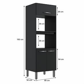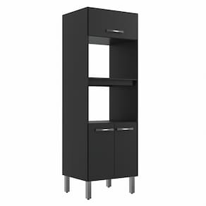 O móvel foi inteligentemente projetado para otimizar o espaço. Ele apresenta compartimentos específicos para acomodar um micro-ondas e um forno (Espaços dos Nichos de 57x38 cm Livre), proporcionando praticidade e organização à sua cozinha. Esses espaços foram cuidadosamente dimensionados para garantir um encaixe perfeito e fácil acesso aos aparelhos. Também pode ser utilizado para outros eletrodomésticos do seu dia a dia.