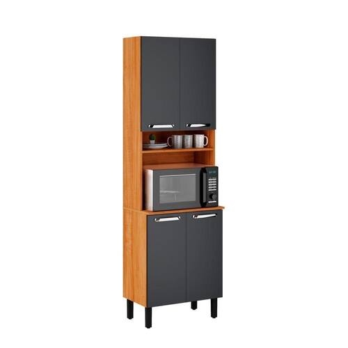 Paneleiro Vegas 4 Portas E Nicho Para Forno - Itatiaia Cinamomo/grafite O Paneleiro Vegas é a solução perfeita para quem busca praticidade e estilo na organização da cozinha. Com um design moderno e funcional, este móvel oferece excelente aproveitamento de espaço para armazenar louças, copos, panelas e eletrodomésticos. Os exclusivos puxadores ergonômicos metalizados garantem facilidade ao abrir e fechar as portas. Ideal para quem valoriza a ergonomia e a organização em um único móvel. Produzido em MDP, possui tampo que suporta altas temperaturas, permitindo que seja com Forno ou Microondas. Dimensões do produto montado: Altura: 210cm; Largura: 64cm; Profundidade: 41cm;
