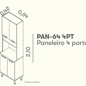 Características: - 4 Portas - Produzido em MDP - Tampo resistente a altas temperaturas - Nicho para eletros - Pés com regulagem de altura