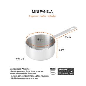 Panela Couvert é pequena e perfeita para servir entradas, molhos, sobremesas e pratos gourmet. As panelinhas sao versateis, podem ser utilizadas para finalizar, aquecer no forno e servir finger foods. Elas sao perfeitas para buffet, restaurante e bistro. As mini panelas sao produzidas em aluminio resistente e leve. Nao é indicado o uso diretamente ao fogo.