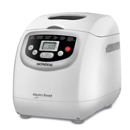 Com 19 funções pré-programadas, timer e opção de programar o funcionamento até 15h antes, a panificadora automática master bread NPF-54 tem painel digital, fôrma antiaderente e removível e faz geleia, tosta castanhas e muito mais! Além de pães prepare também bolos, pizzas, panetones, além de fazer geleia, iogurte, tostar castanhas e muito mais com as 19 opções pré-programadas. Com o painel digital escolha o tamanho dos pães (500 g, 750 g ou 1 kg) e a função timer/temporizador programa o funcionamento até 15H antes. Use o ajuste de tonalidade para escolher como quer seu pão: claro, médio ou escuro. Prática, sua fôrma tem revestimento antiaderente: a comida não gruda e ela pode ser retirada para limpeza. Com o visor de acrílico você acompanha o preparo da receita. Junto com a panificadora automática Master Bread NPF53 você recebe 1 copo medidor e 1 colher dosadora. Ela é melhor para uso doméstico. Tudo isso com 1 ano de garantia Mondial.