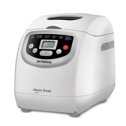 Panificadora Automática Mondial Master Bread NPF-54 220v Pãozinho saudável e quentinho pronto quando você quiser A Panificadora da Mondial conta com 19 opções de pré-programação para você preparar diversos tipos de pães, bolos e massas. Seu painel digital facilita a visualização do tamanho dos pães, seus ciclos e o timer para preparo. Acorde e tome seu café com pão quentinho: seu timer permite programar o preparo com até 15 horas de antecedência. Ajuste a tonalidade do pão entre claro, médio ou escuro e também a quantidade de receita, 500g, 750g ou 1kg.