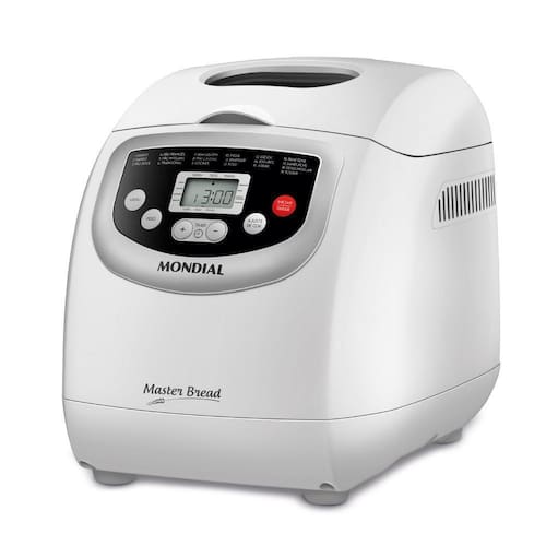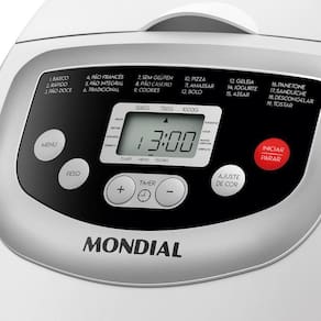 Panificadora Automática Mondial Master Bread NPF-54 220v Pãozinho saudável e quentinho pronto quando você quiser A Panificadora da Mondial conta com 19 opções de pré-programação para você preparar diversos tipos de pães, bolos e massas. Seu painel digital facilita a visualização do tamanho dos pães, seus ciclos e o timer para preparo. Acorde e tome seu café com pão quentinho: seu timer permite programar o preparo com até 15 horas de antecedência. Ajuste a tonalidade do pão entre claro, médio ou escuro e também a quantidade de receita, 500g, 750g ou 1kg. CARACTERÍSTICAS: - 19 programas de preparo - Potência de 600W - Timer de 15 horas - Forma antiaderente - Design moderno - Painel digital - Ajuste de Tonalidade Claro, Médio e Escuro DADOS TÉCNICOS: - Voltagem: 220v - Potência: 600W - Consumo: 0,6 kW/h - Medidas do produto AxLxP : 32,5x30,5x35,3 cm - Peso aproximado: 4,3 kg - Garantia: 12 meses