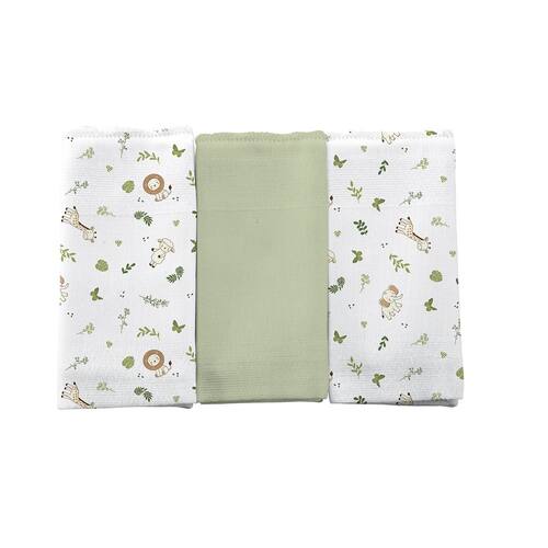 Pano de Boca para Bebê 3 Unidades 34 cm x 40 cm Bercinho - Safari Folhas