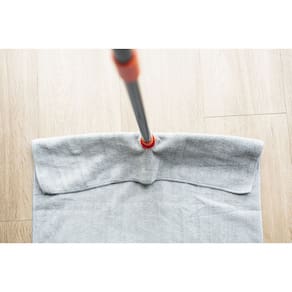 Seu grande diferencial é o furo central para encaixe do cabo do rodo ou da vassoura, mantendo o pano firme durante o uso e proporcionando maior controle, alcance e conforto na limpeza, sem precisar se abaixar ou usar as mãos.