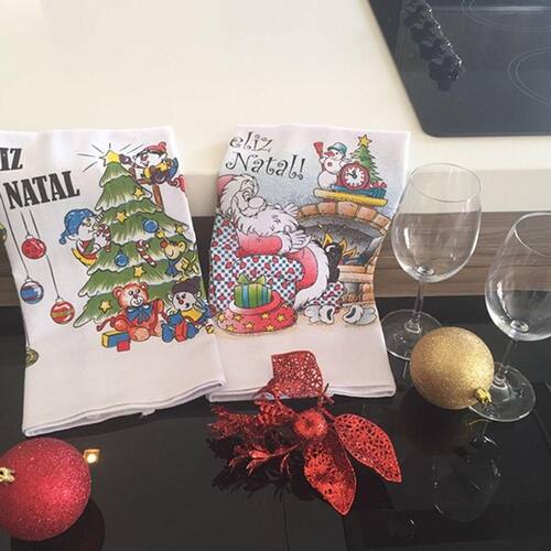 Conteúdo e Medidas: Panos de Prato Estampado Sacaria - Natal - 24 - Peças Tamanho (0,45cm x 0,71cm)