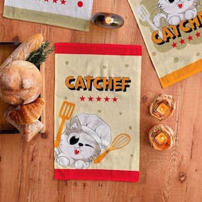 Pano De Copa Teka Primore Cat Chef Pano de Copa Teka Primore Cat Chef Praticidade é palavra chave na Coleção Primore. Além de coordenar com a linha Mesa Basic, facilitando a decoração, os panos de copa Primore são confeccionados em 100% algodão e super fáceis de lavar e secar, acrescentando ainda mais cor e vida à sua cozinha.