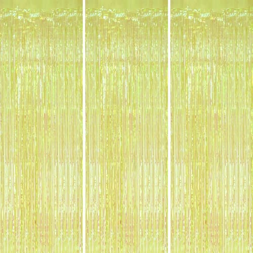 Pacote com 3 panos de fundo com franjas de alumínio DECOCKRAT — Cortinas de enfeites verdes brilhantes transparentes para decoração de festas/adereços de cabine fotográfica — Pano de fundo de alumínio metálico de 3,3 x 8,2 pés para aniversário, casamento, formatura e Natal