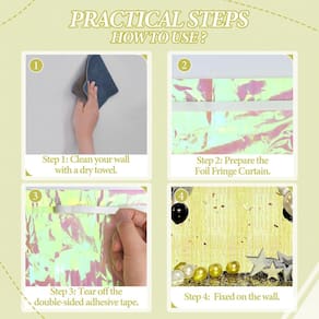 -?Reutilizáveis e duráveis?Feitos de material durável, esses cenários com franjas de alumínio são perfeitos para vários usos e podem ser armazenados facilmente até sua próxima ocasião especial. Prepare-se para impressionar seus convidados com a cortina de franjas de alumínio DECOCKRAT.