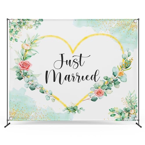 Pano de fundo fotográfico de casamento Zink — Fundo de estúdio fotográfico de 4,5 pés x 6 pés sem rugas com design floral e texto recém-casado — Material de qualidade — Feito de vinil de alta qualidade e alta resolução, o pano de fundo durável resiste ao desbotamento e é fácil de limpar com um pano úmido. - FÁCIL CONFIGURAÇÃO E ARMAZENAMENTO - Leve e dobrável, o pano de fundo pode ser configurado rapidamente em qualquer estúdio fotográfico ou sessão de fotos no local. - Design encantador — O fundo de vinil apresenta um design floral de cor clara com o texto “Just Married”, perfeito para casamentos. - TAMANHO PERFEITO - Com 4,5 x 6 pés, o pano de fundo tem o tamanho perfeito para todas as suas necessidades fotográficas. - ESTÚDIOS FOTOGRÁFICOS E MUITO MAIS - Projetado para uso em estúdios fotográficos, o cenário também é perfeito para cabines fotográficas, festas e muito mais.