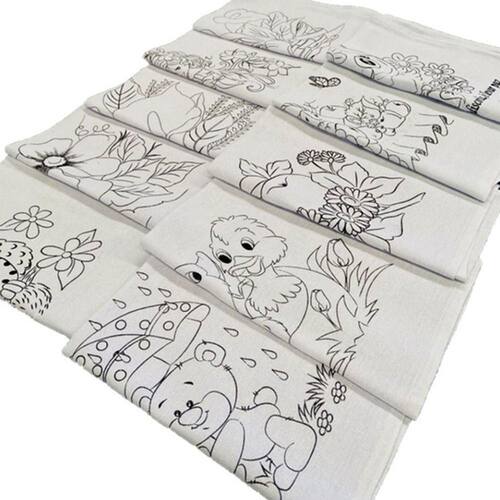Conteúdo e Medidas: Pano de Prato Sacaria Contorno para Pintura - 12 Peças Tamanho (45cm x 71cm) Bainha 4 Laterais