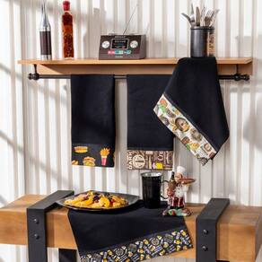 Transforme a sua cozinha com os nossos Panos de Prato Preto 100% Algodão Pé de Galinha, desenvolvido para unir elegância e funcionalidade em um único conjunto. Produzido com tecido 100% algodão do tipo pé de galinha, este kit oferece uma absorção superior, secando louças, mãos e superfícies com eficiência, enquanto o acabamento refinado em patchwork traz um toque de sofisticação à decoração. Características do Produto: - - Contém: 4 panos de prato - Dimensões: 48cm de largura x 68cm de comprimento; - Composição: 100% algodão, tecido tipo pé de galinha, perfeito para uma absorção eficaz e rápida secagem; - Acabamento de alta qualidade: Overloque reforçado e aviamento em viés, garantindo durabilidade e resistência a lavagens frequentes; Barrado: O envio do barrado é , respeitando a combinação com a cor preta do pano de prato. Marca: Não Informado