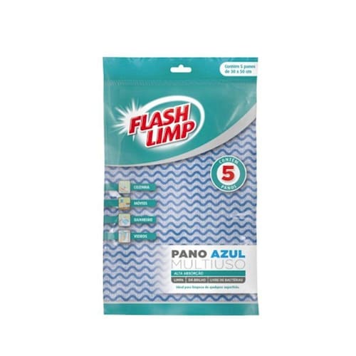 Pano Multiuso Azul 5 Pçs - Flashlimp Facilite o seu dia a dia com a qualidade do Pano Multiuso Azul da FlashLimp. Ótimo para ser utilizados em qualquer superfície e garantia de uma limpeza profunda e higiênica. Os Panos multiuso podem ser utilizado em diversos trabalhos de limpeza. Além disso, também não risca e nem estraga as unhas. Feito 70% Viscose e 30% em Poliéster, ele é extremamente durável e não irá danificar seus utensílios domésticos. Dimensões (Cx Lx A): 01x 17x 30,5; Cor: Azul; Fabricante: FlashLimp. meli_shipping_mode - Sim Cor - Azul Fabricante - Flashlimp