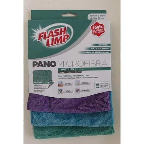 Pano Multiuso em Microfibra 30x30 FlashLimpCom o Pano de Microfibra para Banheiro da FlashLimp você limpa com alta performance. Ele não solta pó e retém sujeiras de modo mais efetivo que os panos tradicionais. A estrutura da microfibra não causa riscos nas superfícies, evita bactérias e não retém odores.Pode ser lavado. Medida : 30cm x30cm