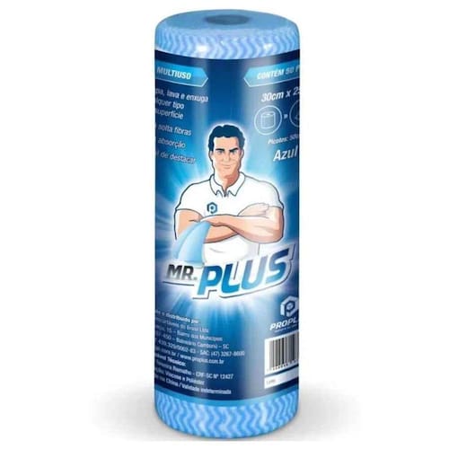 Pano Mr.Plus Mini Az 25Mtx30CmPrático e resistente, o Pano Multiuso Nobre é ideal para a limpeza. Possui alta absorção, sendo um grande aliado para diversas necessidades. É um produto versátil, já que lava, seca, tira o pó e da brilho. Pode ser utilizado para limpeza geral nos mais variados ambientes como: Indústrias, restaurantes, bares, açougues, hotéis e etc. Contém 5 panos de 30x50cm cada INSTRUÇÕES DE USO Recomendado para a limpeza de superfícies lisas. Ele pode ser utilizado a seco ou com auxílio de algum produto de sua preferência. PRECAUÇÕES Após o uso, lave o pano com água e detergente ou sabão. Recomenda-se não esfregar ou torcer o pano, apenas espreme-lo levemente para secar, aumentando assim sua preferência. COMPOSIÇÃO 50% Celulose 50% Poliéster DIMENSÕES Pacote Altura 25cm Largura 5cm Profundidade 16cm Peso 0,262kg* Todas as informações divulgadas são de responsabilidade do fabricante/fornecedor