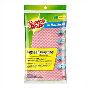 Pano multiuso Scotch Brite rosa pacote com 5 unidades - 3M