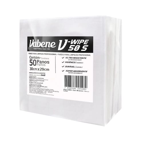 Pano Para Limpeza V-Wipe 50Un - Vabene Top de vendas tanto para tarefas domésticas, quanto para o setor alimentício e também da saúde, o V-Wipe possui uma excelente capacidade, resistência e velocidade na absorção de líquidos. Com sua alta tecnologia, oferece praticidade e uma facilidade sem igual para as limpezas mais difíceis Além disso, ele inibe a proliferação de bactérias, não solta fiapos e pode ser APLICAÇÕES: Panos de alta tecnologia para limpeza . Substitui panos e toalhas proporcionando melhor desempenho para garantir higiene e praticidade na secagem de pisos, superfícies, bancadas, bandejas, talheres, pratos, chapas, fornos e fogões. Setor Industrial: indústrias químicas, petrolíferas, automotivas, refinarias, metalúrgicas, mineradoras, transportes, bebidas, plásticos e borrachas, gráficas e estamparias. Tamanho: 30 x 29cm Cor: Branco Contém: 50Un Marca: Não Informado Ean: 7898546005480