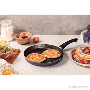 Preparar aquela panqueca ou tapioca deliciosa para seu café da manhã, fica muito mais prático com a Panquequeira Paris em Alumínio 28 cm Preta Tramontina. Indispensável para uso no dia a dia, ela é produzida em alumínio com espessura de 1,8 milímetros e conta com revestimento interno e externo em antiaderente Starflon Max, características que evitam que os alimentos grudem em sua superfície, a tornam fácil de limpar, mais durável e não prejudicial à saúde. Pensando em sua segurança, o cabo é em baquelite antitérmico, material que não aquece. A panquequeira ainda pode ser levada à máquina de lavar louças e vai deixar seu dia a dia muito mais prático. Escolha Tramontina e transforme a hora de preparar suas refeições!Corpo de alumínio com espessura de 1,8 mm que proporciona cozimento rápido e uniforme. Revestimento interno e externo de antiaderente Starflon Max que não gruda, é fácil de limpar, mais durável e não é prejudicial à saúde, pois é livre de PFOA. Cabo de baquelite antitérmico que oferece segurança durante o manuseio. Pode ir à máquina de lavar louças facilitando seu dia a dia.Código de Barras: 7891112297616Referência: 28506628 Marca: TramontinaComposição/Material: Alumínio Dimensões aproximadas do produto (cm) : 7x28,3x46,8 cmPeso aproximado do produto (kg): 0.520 kg