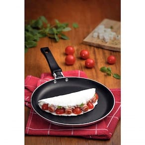 Panquequeira Tramontina 22cm Alumínio Antiaderente Umalinha forte e resistente para um trabalho intenso na cozinha. As peçasde alumínio de maior espessura proporcionam maior desempenho durante ocozimento. O revestimento interno com Starflon Plus, além de facilitara limpeza, permite que você crie receitas rápidas e saborosas. Recomendações de Uso: Antes do uso: Antes de utilizar o produto pela primeira vez, remova as eventuais etiquetas, lave interna e externamente o utensílio, usando apenas uma esponja macia, sabão neutro ou detergente líquido. Enxugue bem com um pano seco e unte todas as partes internas com óleo ou gordura. Esquente o utensílio em temperatura baixa por um ou dois minutos. Deixe-o esfriar, lave e enxugue novamente. A partir daí poderá ser com ou sem de uso: Durante o uso, evite esquentar o utensílio vazio. Use sempre aquecimento baixo ou médio para conservar o revestimento do utensílio. Para mexer ou retirar o alimento, utilize somente utensílios de plástico, madeira ou silicone, que não danificam a superfície com antiaderente. Após uso evite imersão do utensílio quente em água fria. Mesmo depois de vários usos, nunca utilize produtos abrasivos na lavagem. Podem ser levados, diariamente, à maquina de lavar louça.- Foto meramente ilustrativa Informações Adicionais: