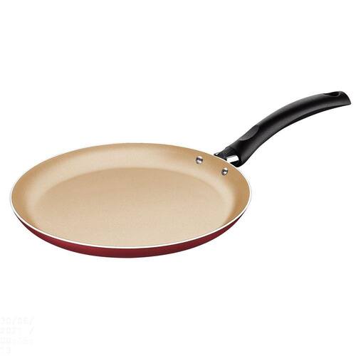 A panquequeira Tramontina Turim em alumínio com revestimento interno e externo em antiaderente Starflon Max vermelha 22 centímetros de diâmetro 0,6 litros é a escolha perfeita para você que ama preparar deliciosas panquecas para o almoço da sua família ou aquela tapioca para seu café da manhã. Produzida em alumínio com espessura de 1,6 milímetros e revestimento interno e externo em antiaderente Starflon Max, características que proporcionam um cozimento rápido e uniforme dos alimentos, evitam que eles grudem em sua superfície, a tornam fácil de limpar, mais durável e não prejudicial à saúde. Seu cabo é em baquelite antitérmico e oferece maior segurança durante o manuseio, pois não aquece. Além disso, ela é muito prática e pode ir à máquina de lavar louças, facilitando seu dia a dia na cozinha! Orientações Corpo de alumínio com espessura de 1,6 mm que proporciona cozimento rápido e uniforme. Revestimento interno e externo de antiaderente Starflon Max que não gruda, é fácil de limpar, mais durável e não é prejudicial à saúde, pois é livre de PFOA.Cabo de baquelite antitérmico que oferece segurança durante o manuseio. Pode ir à máquina de lavar louças facilitando seu dia a dia. Características Gerais EAN13 7891112213562 DUN14 17891112213569 NCM 7615.10.00 Peso Líquido 0,2230 kg. Peso Bruto 0,2300 kg. Metragem 0,003949 m³. Dimensões Embalagem (Compr. X Larg. X Alt.) 385x 223x 46 mm. Dimensões Produto (Compr. X Larg. X Alt.) 378x 223x 50 mm. Diâmetro 22,0 cm. Capacidade 0,60 l. Cor 1 9E2A2B Hexa Observações A capacidade volumétrica máxima para cozimento é de 3/4 da capacidade total da peça. Posicione o cabo do utensílio voltado ao centro do fogão.Em fogões com grade, centralize a peça sobre a chama ou fonte de calor e alinhe o cabo com a grade.Utensílios quentes devem estar fora do alcance das crianças.Antes do primeiro uso, lave com esponja macia, sabão neutro ou detergente líquido. Depois de secar, unte a área interna com óleo ou gordura e leve ao fogo por um ou dois minutos. Deixe esfriar e lave novamente. Seu utensílio Starflon está pronto para uso com ou sem gordura, sempre em fogo baixo ou médio (nunca superior a 260 °C). Para mexer os alimentos use somente utensílios de silicone, nylon ou madeira. Este produto não necessita de manutenção, apenas limpeza. Limpeza: Evite a imersão do utensílio quente em água fria. Nunca utilize produtos abrasivos na lavagem. Se deixar queimar alimentos, umedeça a área e reserve até que possa remover os resíduos grudados com esponja e sabão. Para descarte do produto e embalagem siga as orientações de reciclagem vigentes.