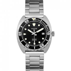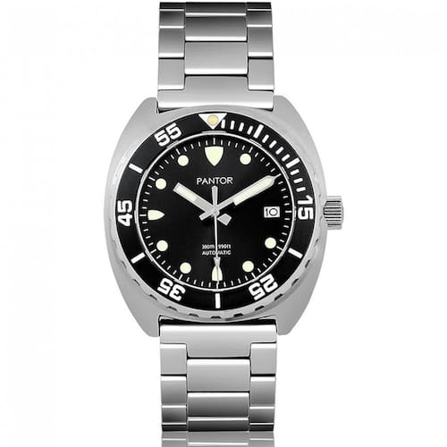 Fabricado nos EUA ou importado Relógios de mergulho profissionais automáticos para homens com válvula automática de hélio às 9h Resistência à água de 300 m , 990 pés com movimento SII NH35A adequado para mergulho, natação e mergulho livre 20 camadas Swiss Super LumiNova em índices, ponteiros e marcação de moldura rotativa unidirecional de 120 cliques Cristal de safira com revestimento anti reflexo, diâmetro 42,, espessura 12,, caixa em aço inoxidável e pulseira com fivela assinada PANTOR Aperte bem a coroa antes de entrar na água