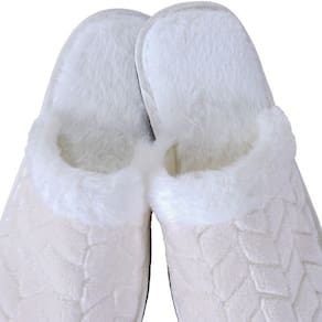 Pantufa Chinelo Luxo Quentinho e Confortável Off White - 41/42 - 100% Poliéster, Solado EVA Costurado