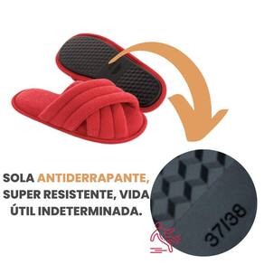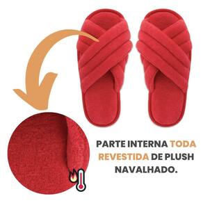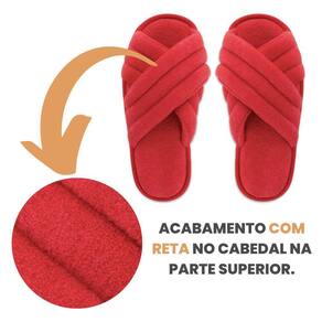 Pantufa Feminina Antiderrapante Chinelo de X 100% Poliéster - 39-40 - Vermelho