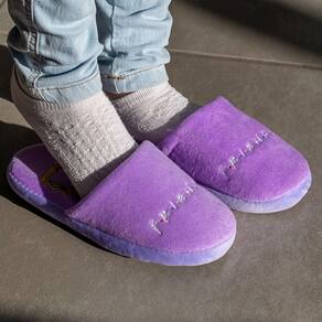 Para ser aquele com os pés quentinhos, sem abrir mão do estilo você precisa da Pantufa Friends Purple ! Ótima para fazer companhia nos dias frios em casa e te acompanhar na hora de assistir seus episódios favoritos, ela é macia e confortável para você relaxar deixando os pés quentinhos, com total segurança, graças a seu solado em borracha antiderrapante. Material: Poliéster Dimensões tamanho P: 24 x 10 x 10cm. Peso: 150g Uso: Unissex Informações de conservação: Lavar a mão com água fria Informações adicionais: Tamanho P: Calça 33 - 35