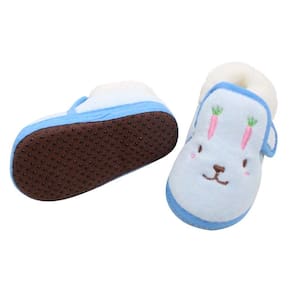 Pantufa Sapatinho Infantil Bebe Coelhinho Azul Forrada com fecho aderente -