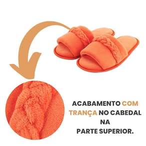 Pantufa Slide Antiderrapante Com Trança Adulto e Infantil - 27-28 - Laranja