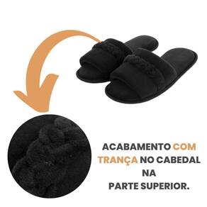Pantufa Slide Antiderrapante Com Trança Adulto e Infantil - 39-40 - Preto