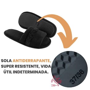 Pantufa Slide Antiderrapante Com Trança Adulto e Infantil - 31-32 - Preto