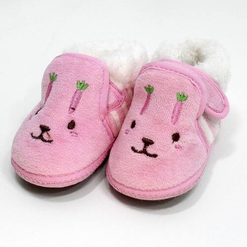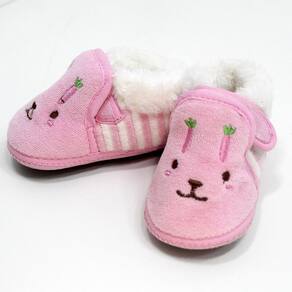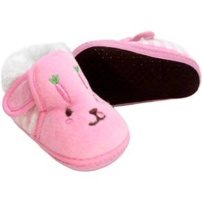 Pantufas Sapatinho Coelhinho Para Bebês Forrada com fecho aderente Rosa - 0 a 12 Meses -